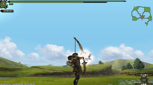 重量感溢れる大型のボウガンであるため,動きは鈍くなってしまうが,放たれる弾の威力は高い。タイミング良くリロードすることで,攻撃力アップが狙える。ライトボウガンと同様,防御力が低くなるという欠点をカバーしながらの狩猟が求められる。■弓