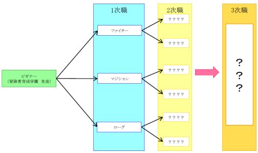1次職によって選べる2次職・3次職が違ってきますので、1次職を選ぶときは目指す3次職を視野に入れて、選ぶことが必要になります。