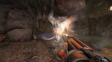 ハンターが使用する数ある武器の中でも、トップクラスのダメージを誇る“Flamethrower”は近距離時に効果を発揮する火炎放射器で、味方の支援が十分に効果を発揮する状況で命中させ続けた場合、1度に致命的なダメージを敵モンスターに与えることができる。