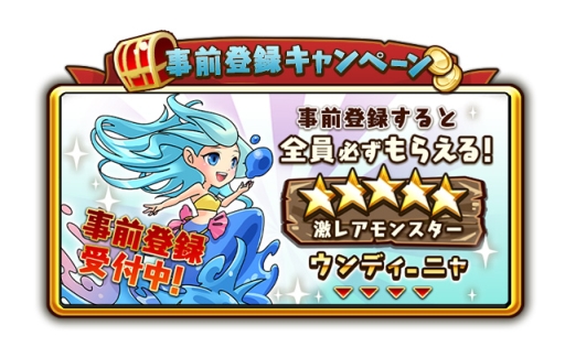 - 特典 (1):事前登録していただいた方もれなく全員に“激レア★5モンスター『ウンディーニャ』”をプレゼント!