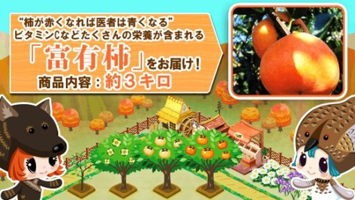 本イベントでは、ゲーム内で同市にまつわるクエストを毎日更新、そのクリア報酬として、円錐形土偶(国重要文化財)等同市オリジナルのデコレーションアイテムを配布いたします。また、ゲーム内で指定作物を育てると、抽選で南アルプス市特産の富有柿(3kg)を抽選で30名様にお届けいたします。