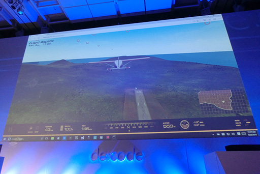 基調講演では,UWPブリッジのデモとして,WebGLを使って作られたフライトシミュレータをUWP用アプリケーション化する様子が披露されている。
