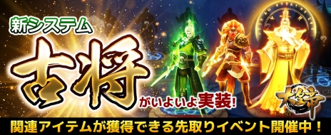 株式会社インゲーム(本社:東京都千代田区、代表取締役社長:段卓、http://www.ingame.jp/ )は、ブラウザ向けシミュレーションゲーム「大皇帝」において、新しいゲーム内コンテンツ「古将」が追加される新バージョンの実装を予定しております。それに伴い新バージョン先取りイベントを5月28日(月)より開催致します。