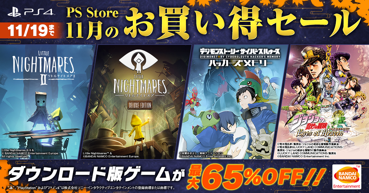 「リトルナイトメア」シリーズなどの人気タイトルが最大65%オフ。バンダイナムコがPS Store“11月のお買い得セール”に参加