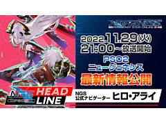 セガは,オンラインRPG「PSO2 ニュージェネシス」の公式番組「NGSヘッドライン」を,本日21:00から放送すると発表した。番組では,公式ナビゲーターのヒロ・アライ氏が,11月のアップデート情報のほか,12月に配信予定の「スティアリージョン」に関する続報などを紹介する予定だ。