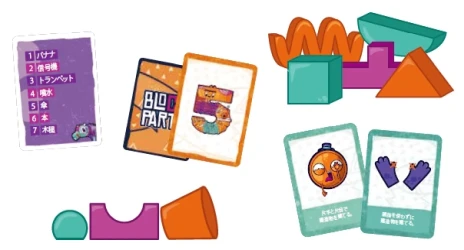 『ブロック・アンド・ゲス』は、ブロックで作られた「もの」がどのお題を表すのかを当てる、チーム戦のゲームです。